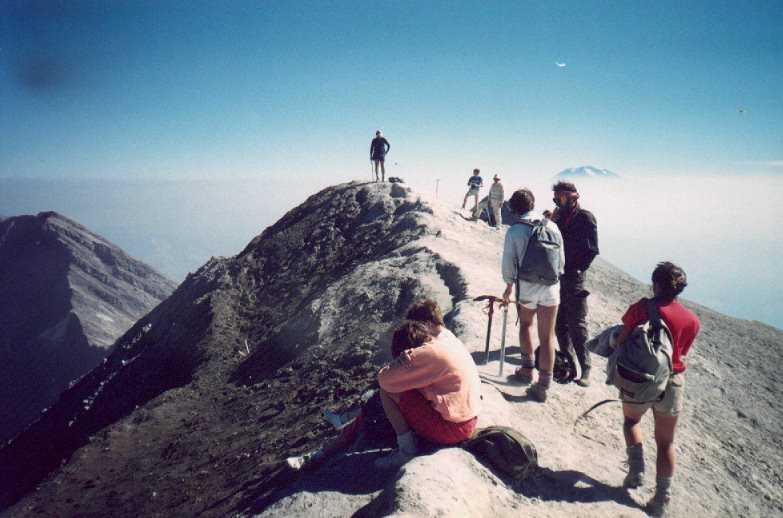 On the summit of Mount St. Helens, the first of several volcano hikes