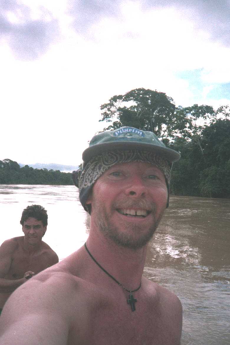 Late that afternoon we flagged down a passing putt-putt (motorized dugout canoe) on the river and got a long ride back to reality along the flooded riverway. Lots of villages along the river were flooded out. Later we heard that many people died from the flooding and mudslides in the mountains that night.